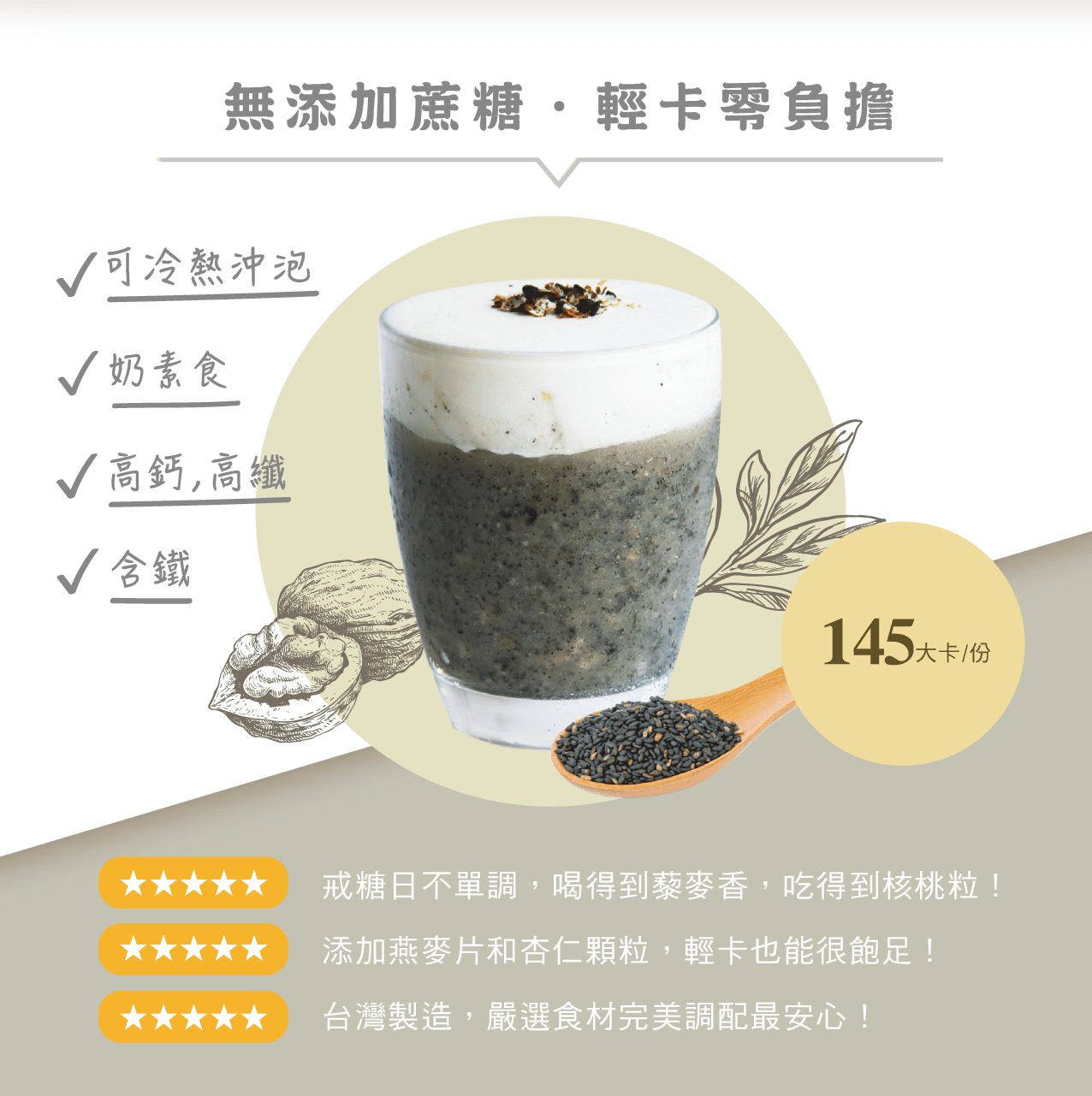 此產品含有黑芝麻、小麥、大豆、燕麥、杏仁果、核桃、牛奶。