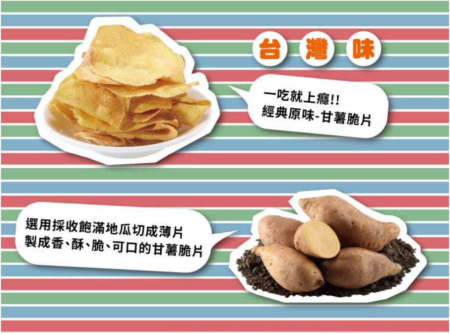 - ⭐甘薯脆片是最能代表台灣的傳統零嘴,