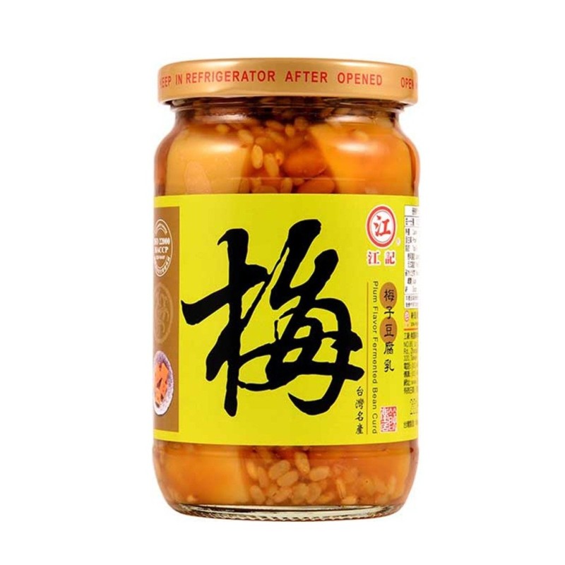 甜酒豆腐乳為基底,加入梅子增添清香果酸,帶有自然的甜味與發酵鹹香,比起一般豆腐乳,它口味更加清爽甘醇、酸甜平衡,是可以直接「當作抹醬」的腐乳。