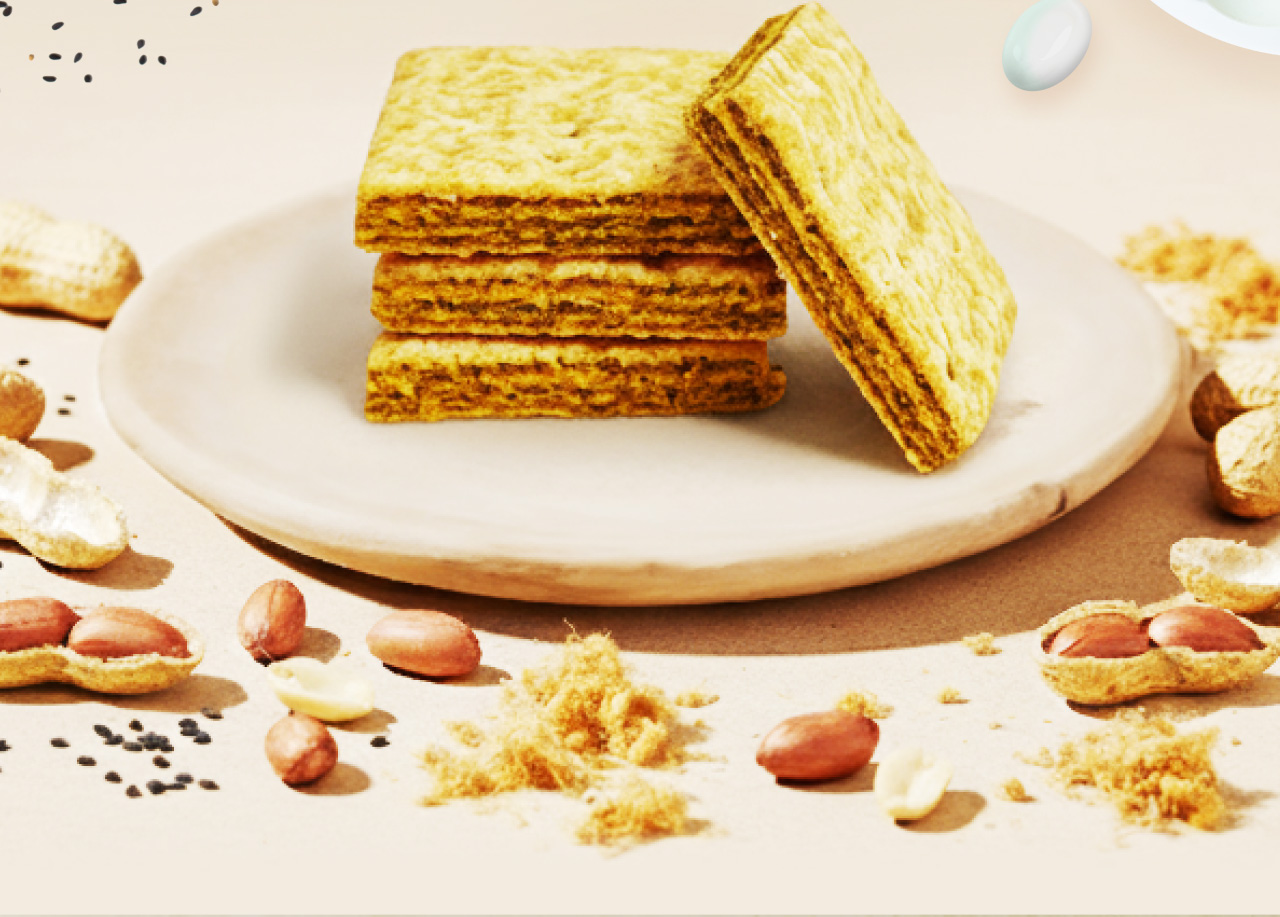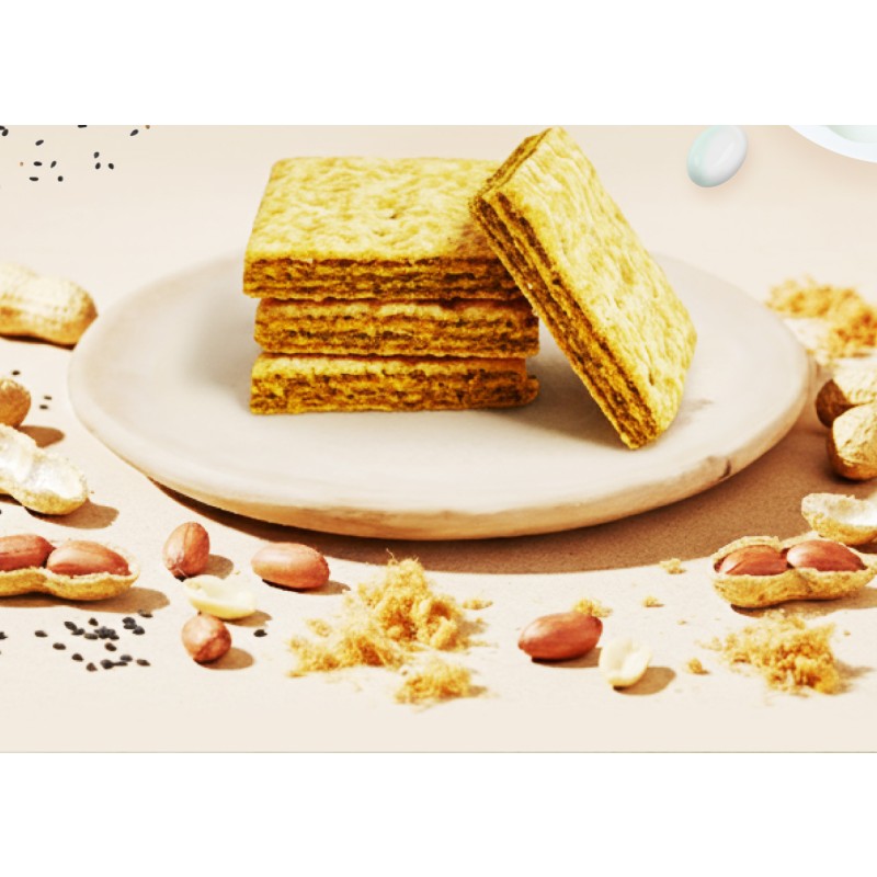 酥脆輕盈的三明治餅乾,夾心滑順濃郁的花生奶油。