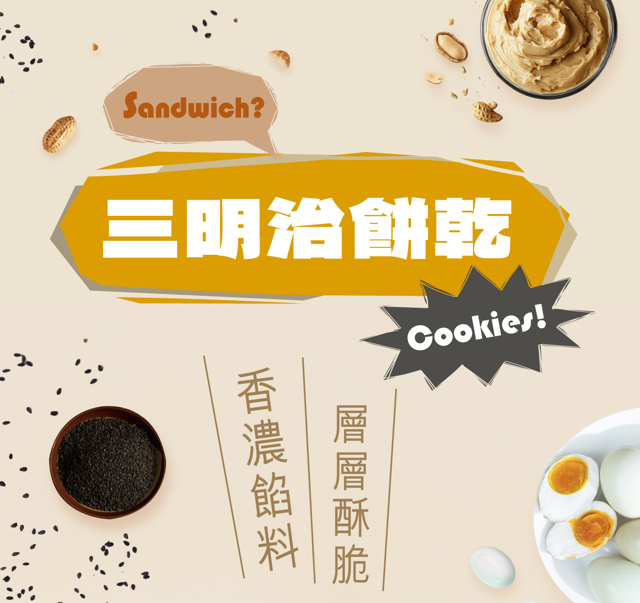 這款台灣花生三明治餅乾,口感香脆紮實,融合濃郁烘焙花生香,甜中帶鹹,越吃越涮嘴。