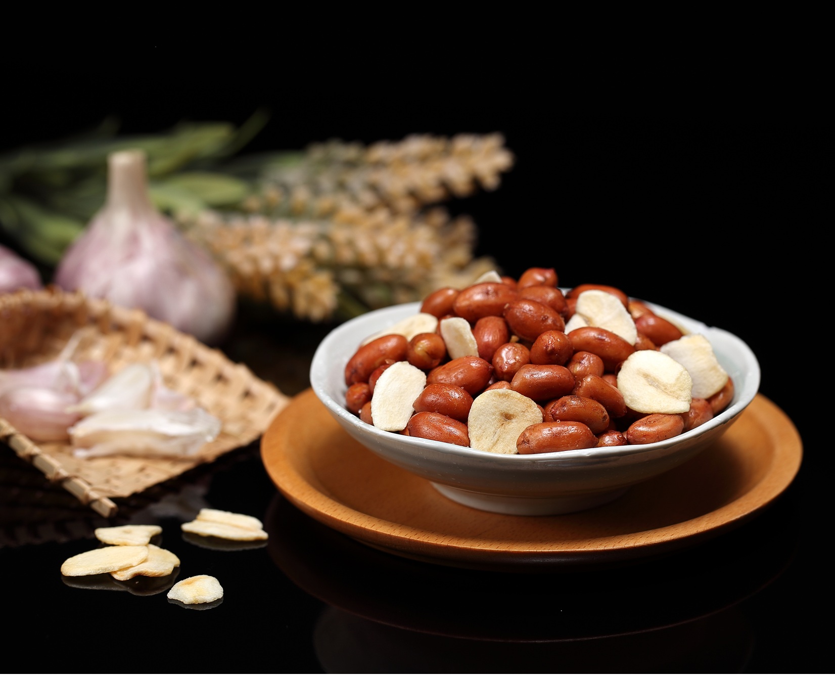 嚴選花生搭配蒜片與五香調味,香氣層層釋放,蒜香明顯卻不嗆口。