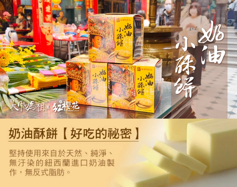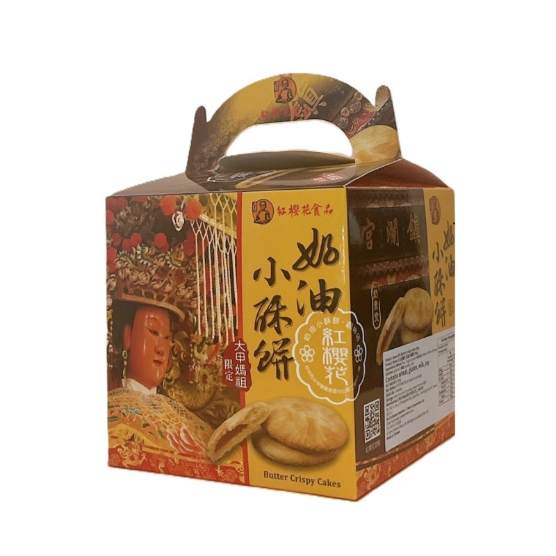紅櫻花首創「大甲奶油小酥餅」,推出後即造成轟動,被喻為大甲名產奶油小酥餅的黃金傳奇,是國內外旅客指定必買的大甲伴手禮、台灣伴手禮。