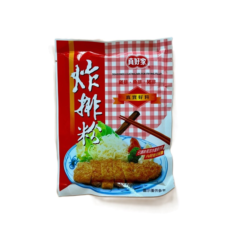 真好家炸排粉已調味免加水直接沾用即可,油炸後香酥可口,是廚房料理好幫手。已調味,免加水可直接使用