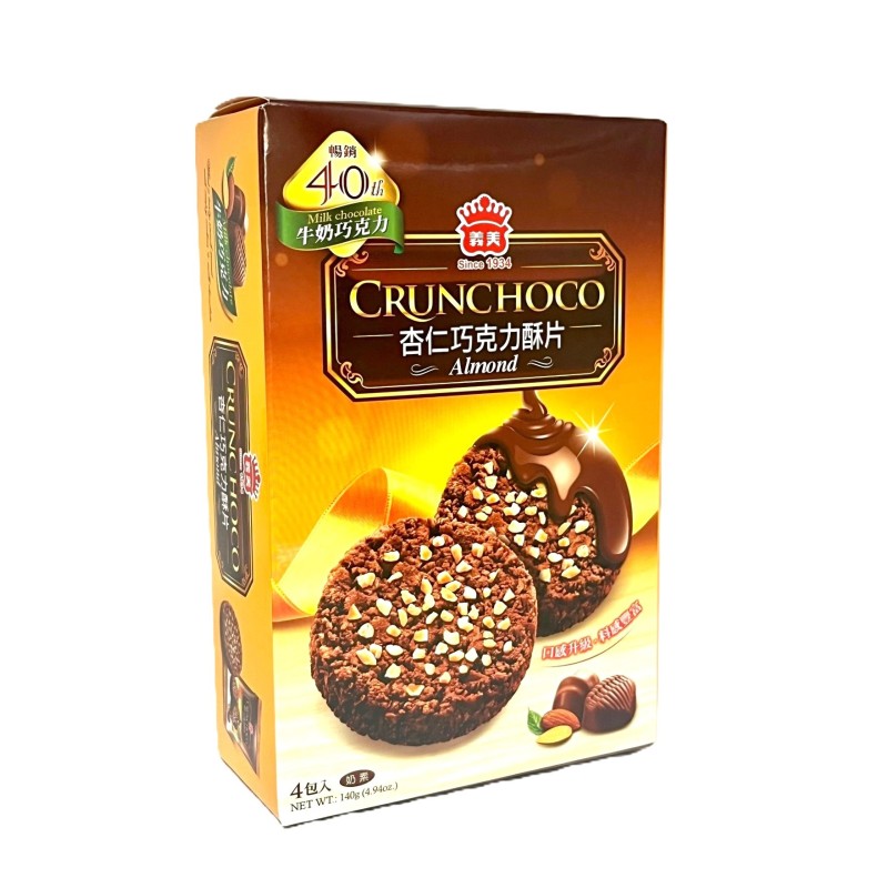 香脆杏仁搭配濃郁黑巧克力,鬆脆巧克力餅體摻雜著杏仁顆粒,多層次的口感,令人無限回味。