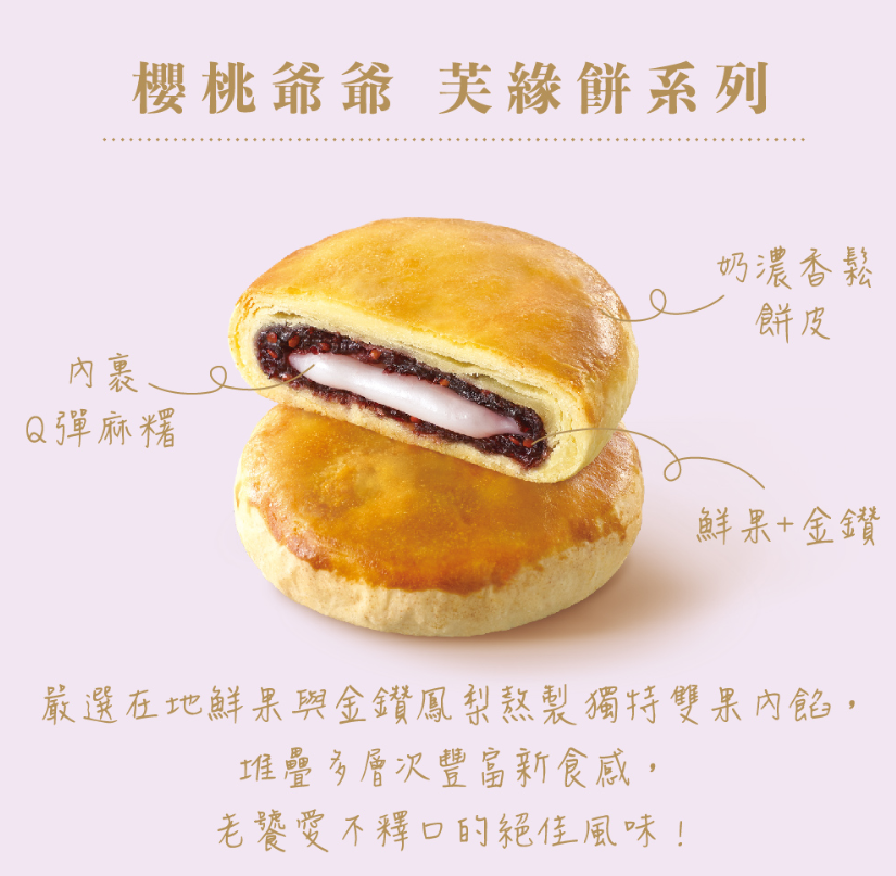 • 嚴選台灣在地鮮果與金鑽鳳梨熬製獨特雙果內餡