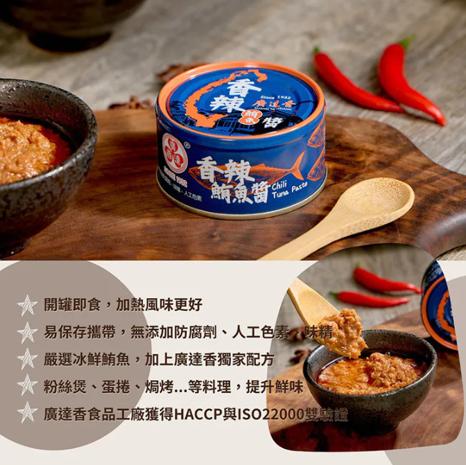 ●被譽為「海鮮版沙茶醬」,風味十足且熱量更低,適合搭配鮮蝦粉絲煲、魚醬蛋捲或墨西哥捲餅等創意料理